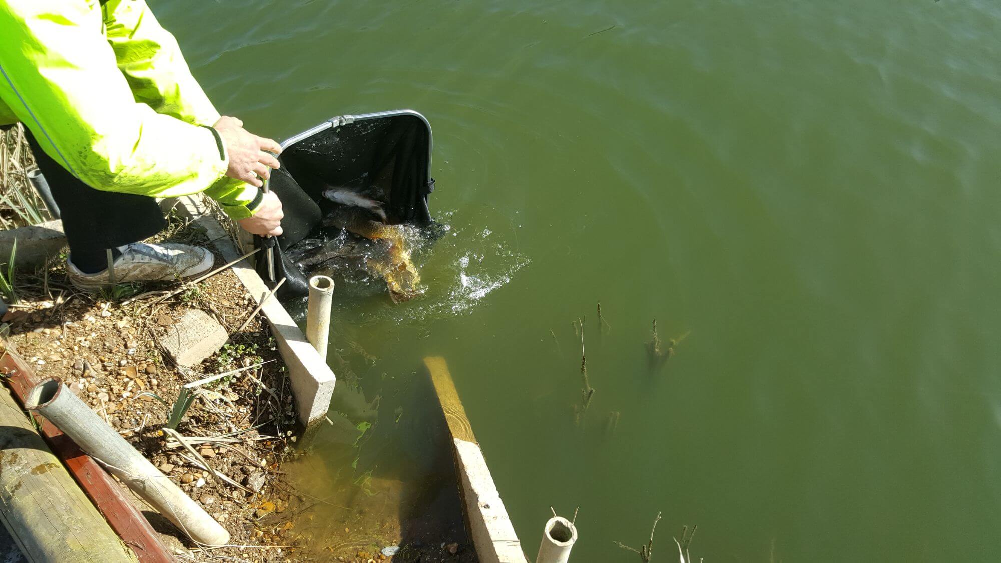 195lb (roughly 200 fish) of a mix of common and mirror carp go into lake 1.